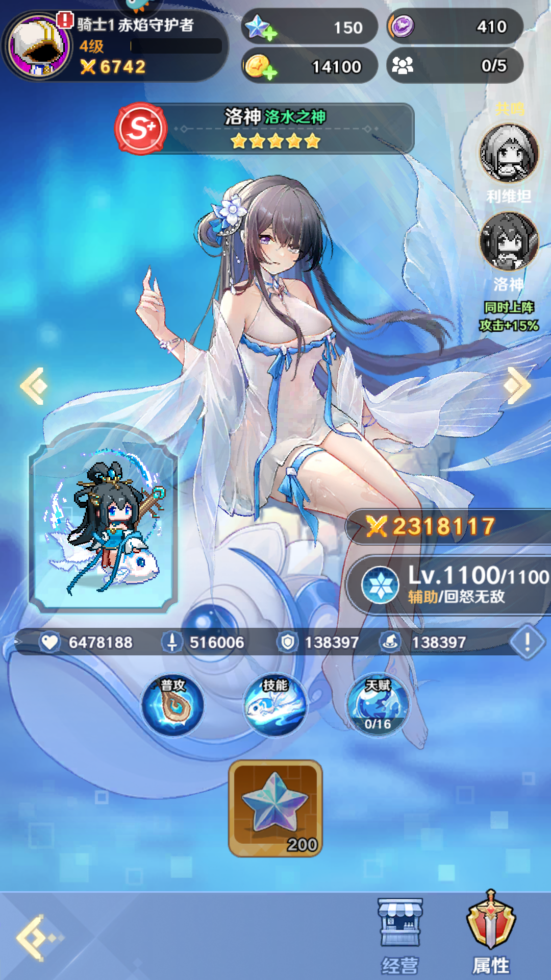 万金油辅助:七日目标可以拿到两个(至少氪金18元),商店可以换一个稳定5月解锁无敌盾。在符文没有成型的前两到三周非常强,破盾和异火符文成型以及各种无视护盾的技能,长效单体无敌盾远远不如羲和的短效双无敌盾,攻击光环收益挺高的,微氪平民玩家没有義和的优先养洛神。
