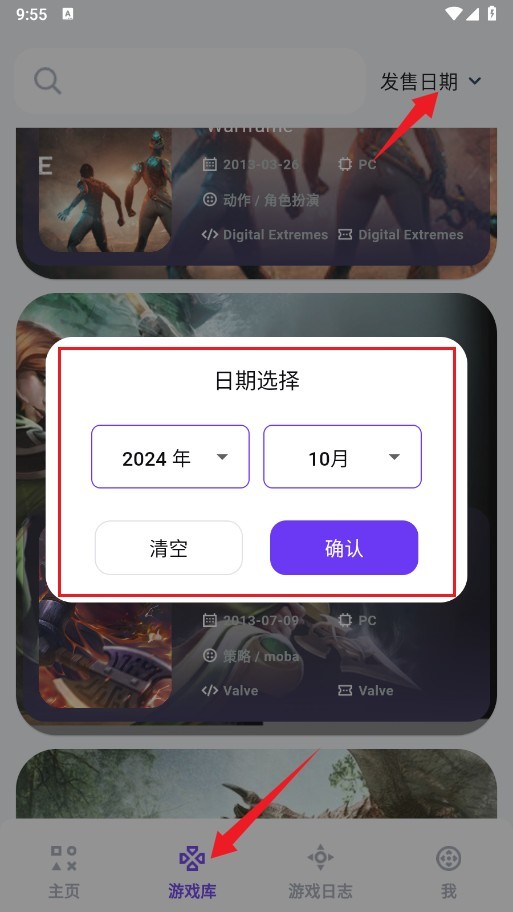 4、游戏库整合了丰富的游戏资源,在这个界面里,你还可以依据发售日期来浏览各类游戏产品。