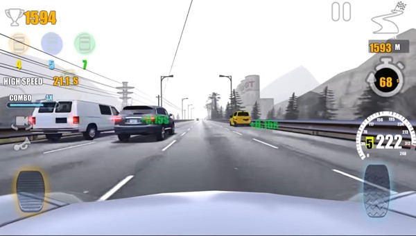 3、在游戏里,加速是很关键的一点,特别是在空旷的路段上保持高速行驶,这样做不只是能节约时间,还可以得到额外的加分。要是速度达到了100km/h或者更高,在和其他车辆擦肩而过的时候就会有额外奖励,不过要是减速的话,就需要重新计分了。