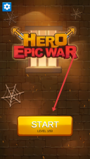 1、启动Hero-Epic-War游戏,在游戏主界面点击START按钮,进入Level-1/50关卡,开启冒险战斗之旅。