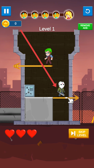 《拯救英雄》是一款巧妙融合冒险解谜与烧脑策略元素的动画风格精品游戏。玩家将置身于精美独特的场景之中,开启紧张刺激的营救行动——通过拔掉销钉、操控机关等方式,帮助身陷险境的英雄们成功脱险。每一次挑战都能带来满满的乐趣与成就感,从简单到复杂循序渐进的关卡设计,持续为玩家提供解谜的动力,非常适合热爱动脑闯关的玩家体验。