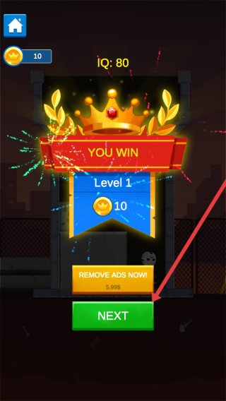3当顺利完成第一关的挑战后,点击界面上的“下一关”按钮,就能获得10个金币作为奖励,同时开启新一轮的关卡挑战。