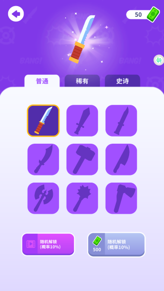 3、武器库内有20种各具特色的工具,这些工具需要通过战斗获取的金币来逐步解锁并购买。