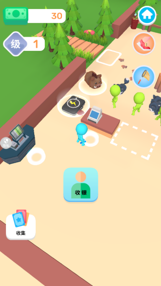 1、捕捉动物后将其安置到指定围栏,供顾客挑选购买;在收银处完成交易结算以获取收益,这些收益可用于解锁新资源和强化相关属性。