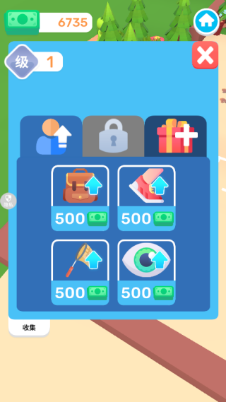 4在收银区域,你可以使用已积攒的金币来解锁背包扩容功能,同时还能提升移动速度、砍伐效率等多项实用能力。