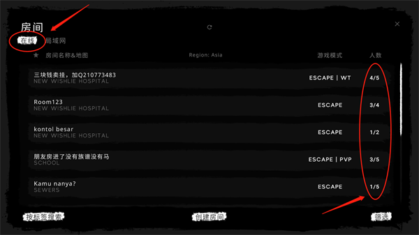 2、在【房间】中,我们可以看到其他玩家所创建的房间,任意点击一个房间即可与其他游戏玩家共同畅玩。