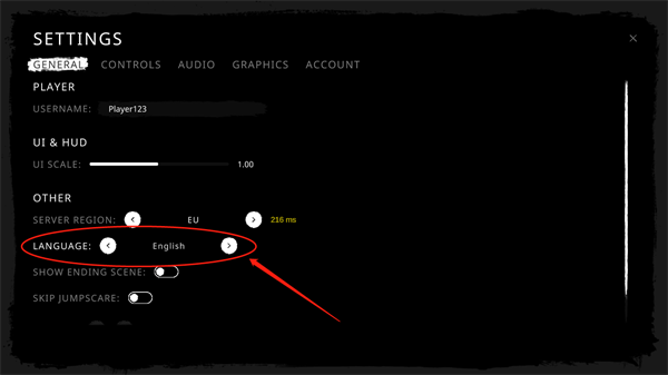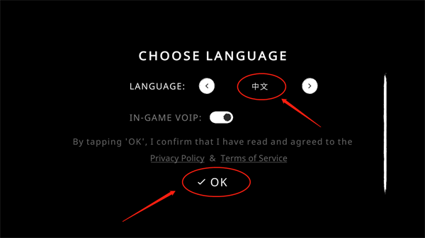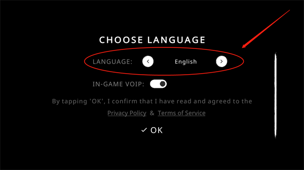 1、如下图所示,这是首次进入游戏时的界面,点击【English】右边的按钮调设语言。