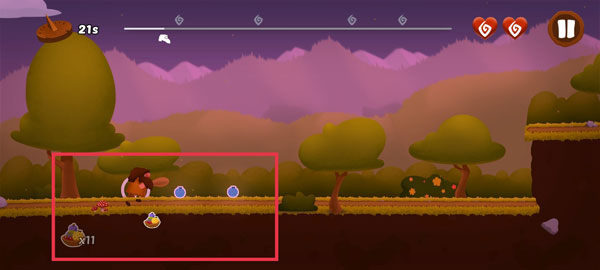 和传统玩法一致的是,游戏里的水果都分布在跑酷路径上,只有在靠近这些水果时,玩家才能成功收集到它们。