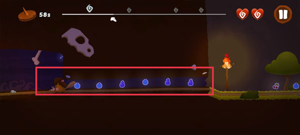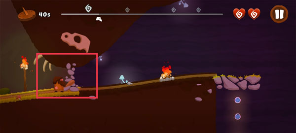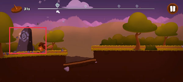 当碰到这类障碍物时,用手指点击屏幕右侧就能爬上去,台阶越高,就多点击几次屏幕右边就行。