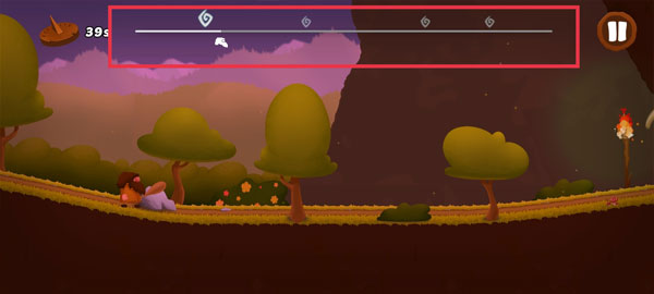 上方的进度条会显示你跑酷所用的时间、到达存档点的位置,以及剩余的进度数等信息。