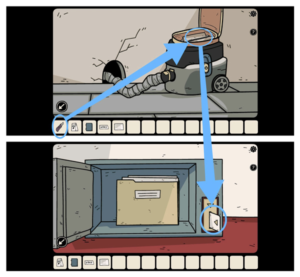 回到暗室后,把软管装到吸尘器上并打开开关,然后用美工刀划开袋子取出「磁卡」,随后返回二楼右侧的房间,用磁卡打开保险柜,点击文件夹即可进入剧情。