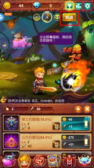2、角色升级后,点击界面上方的挑战选项,即可进入关卡挑战模式。