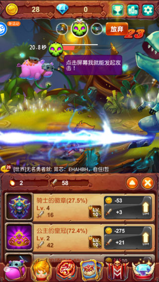 3、能够把挂机攻击和手动点击操作结合起来,在指定时间内击败首领,就能获得胜利。