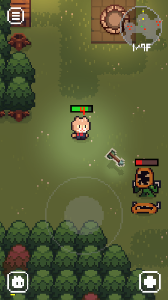 2、在这款游戏里,玩家要操控小猫奶酪在森林中展开探险,只需点击屏幕的任意位置,就能击败所有敌人进入更深层次的区域,或者带着收集到的资源返回。