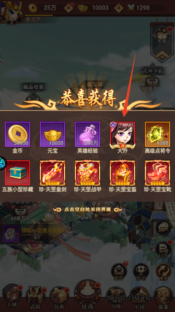 4、这样就算建号成功了,然后就可以领一大波福利,还有个4星大乔。