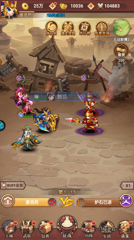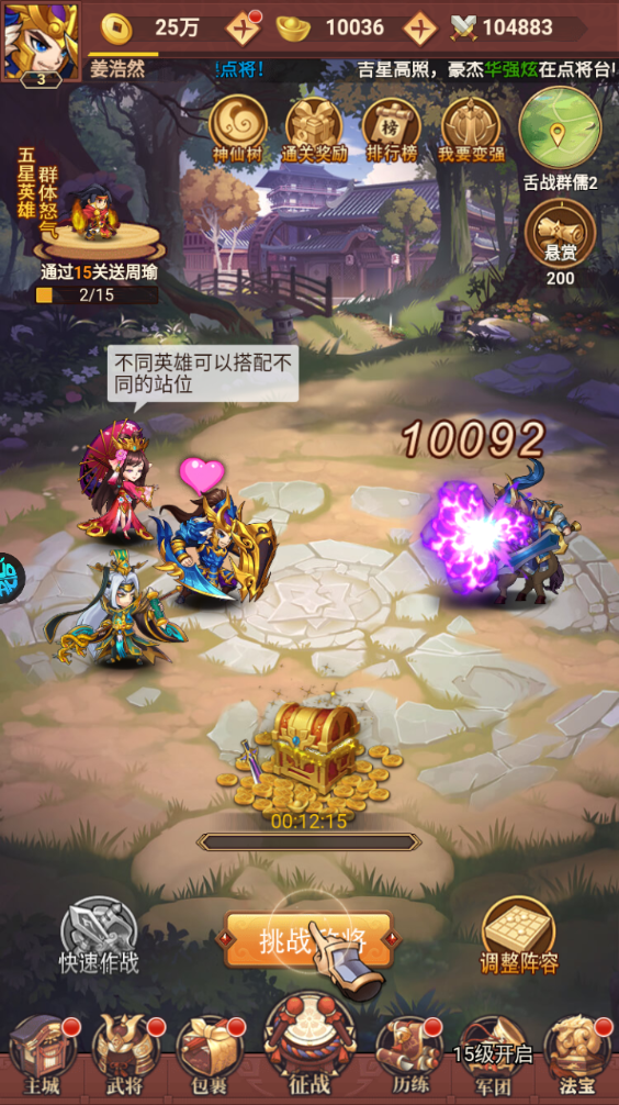 9、点击挑战敌将,就能进入BOSS关卡了,通关15次还送一个周瑜。