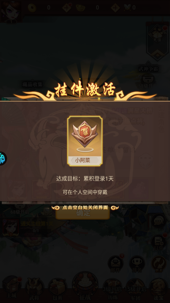 2、进入游戏后会先送玩家一个小挂件,可以在个人空间里查看。