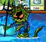 海妖僵尸也只在水域环境中现身,每隔15秒就会召唤出三个缠绕潜水僵尸(每行各有一个),这些被召唤出来的僵尸啃咬植物时,能造成高达五倍的伤害。