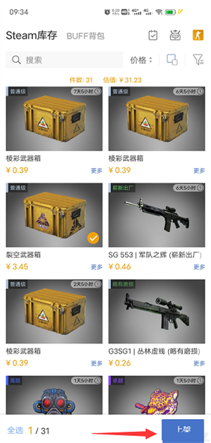 2、定价优化:上架饰品时使用一键定价功能,并结合平台最低价进行调整,以此平衡收益与出单速度。