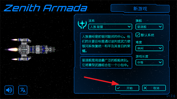 2、选择派系,游戏难度和长度点击开始