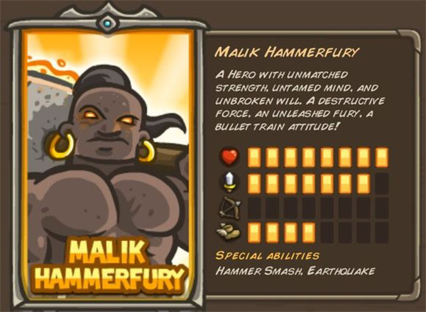 马大锤表面看似皮糙肉厚,实则防御仅属中等水平。作为和爵士同类型的近战英雄,他虽无法对空作战,但应对小怪群的表现要优于爵士。他拥有两个核心技能:第一个是重锤出血,据观察最多能覆盖五六个目标,脆皮怪物往往会被直接击杀,对付蜘蛛、狼群这类敌人效果极佳;第二个是重锤眩晕,能一次性控住不少怪物,为后续输出创造了关键的缓冲时间。 他最常用的场景是第十二关守护园林——只要把马大锤部署在园林门口,就完全不用担心骷髅大军破门而入,堪称“安心保障”。此外,在支线那些怪物扎堆、且血厚难打的关卡里,让他先放一锤子眩晕敌人,也能为团队争取到宝贵的输出或调整时间。
