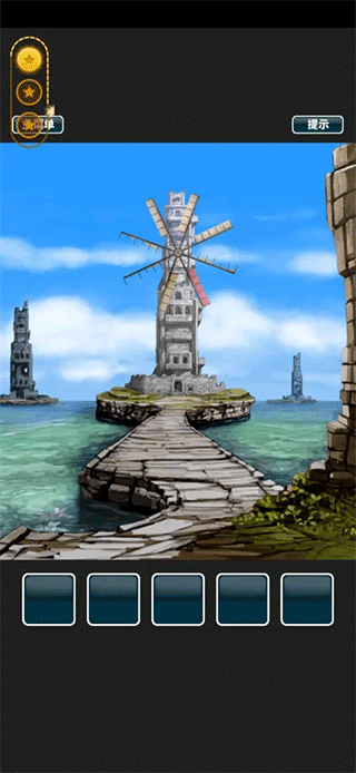 10、纸条红蓝黄绿对应锣的四个颜色,再来到塔外,根据纸条,用风车将天空分成四个颜色,根据锣的位置数星星的个数,再根据纸条红蓝黄绿的顺序,来到塔顶的门上输入密码6226,进门,见到小女孩,第一个世界完。