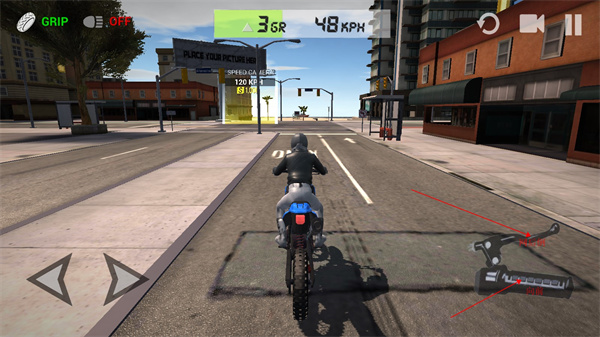 3、打开世界地图:巨大开放世界地图专为测试摩托车技能设计,提供优质体验,场景从城市延伸至沙漠。