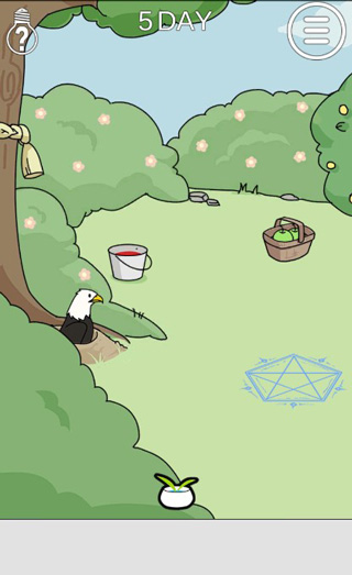 第五关:点击框里的两个苹果,将一个苹果拖到红色油漆桶染色,将红色的苹果放进魔法阵,注意上方会出现一只鸟叼着水桶,用剩下的苹果拖过去砸死他,等鹰进入魔法阵,