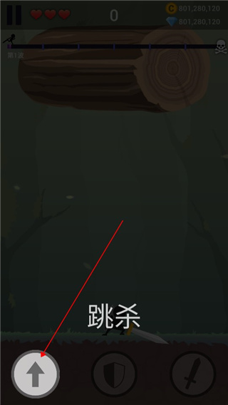 点击盾牌按钮可以控制火柴人抵挡伤害。