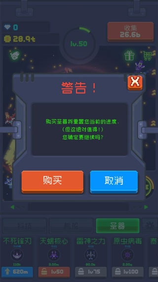 同时科技研究,增加攻击和快速收益也是游戏关键,另外当后面的撞击很难的时候还可以凭借圣器来重置,这样一来收益和攻击也会大幅度加强。