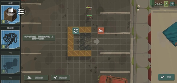 当你完成建造好防御设施之后,就可以点击右下角开始这一轮的僵尸进攻了;