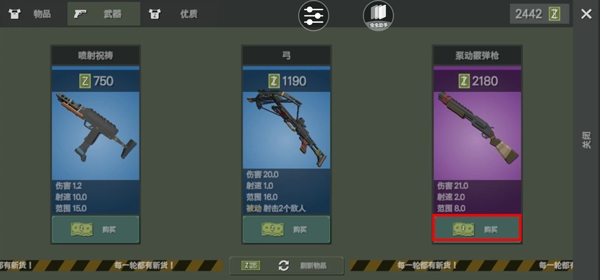 每当你通过一个关卡的时候都会获得奖励,这个时候就可以在商店中购买武器;