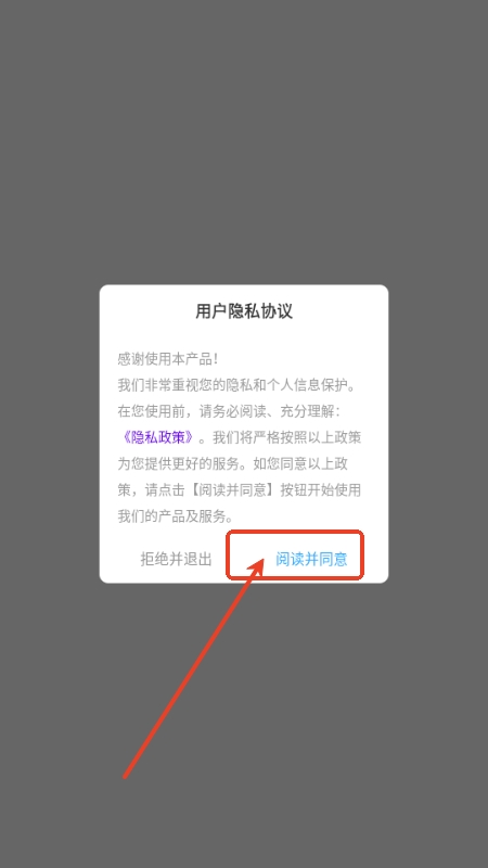 在手机上打开emoji表情库app,点击同意相关的软件政策。