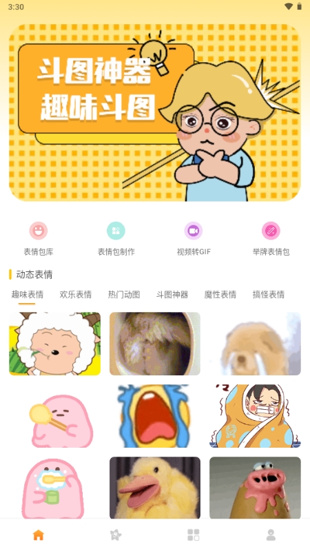 进入首页后,我们将看到丰富多样的海量表情包供自己选择。