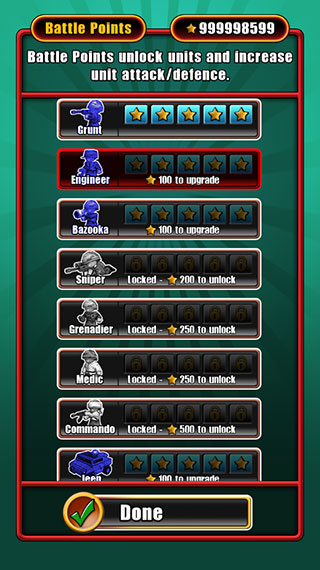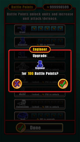 7、建议首先将75的步兵、火箭筒兵、手雷兵,400的巡航舰,300的chopper战斗机全部升级到满级,尤其是步兵和火箭筒兵,性价比很高。