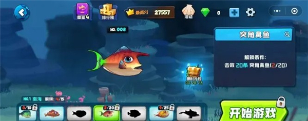 3、突角鼻鱼解锁方式:击败20条突角鼻鱼