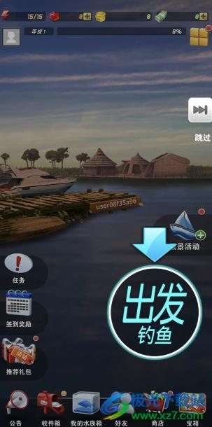 2、新申请的号进入游戏是这个画面,可以忽略,点击出发钓鱼以后开始完成新手任务;