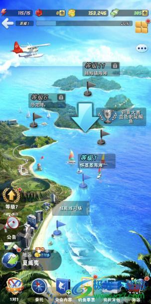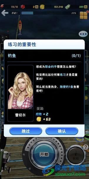 4、接下来就按照新手提示开始进入夏威夷1-1图开始钓鱼;