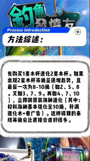二是通过无限垂钓野生鱼获得金钥匙。同时垂钓野生鱼也是获得进化水的重要途径;