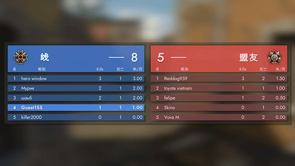6、最后在限定时间内尽力击杀更多敌人。游戏界面上方会展示比分,比分较高的一方赢得游戏胜利。
